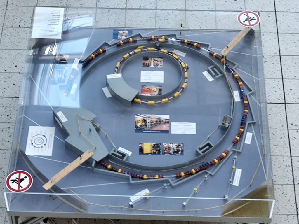 im kleinen inneren Synchrotron Ring sitzt die Elektronenquelle. Hier werden die Elektronen beschleunigt und dann in den äußeren Speicherring eingespeist.